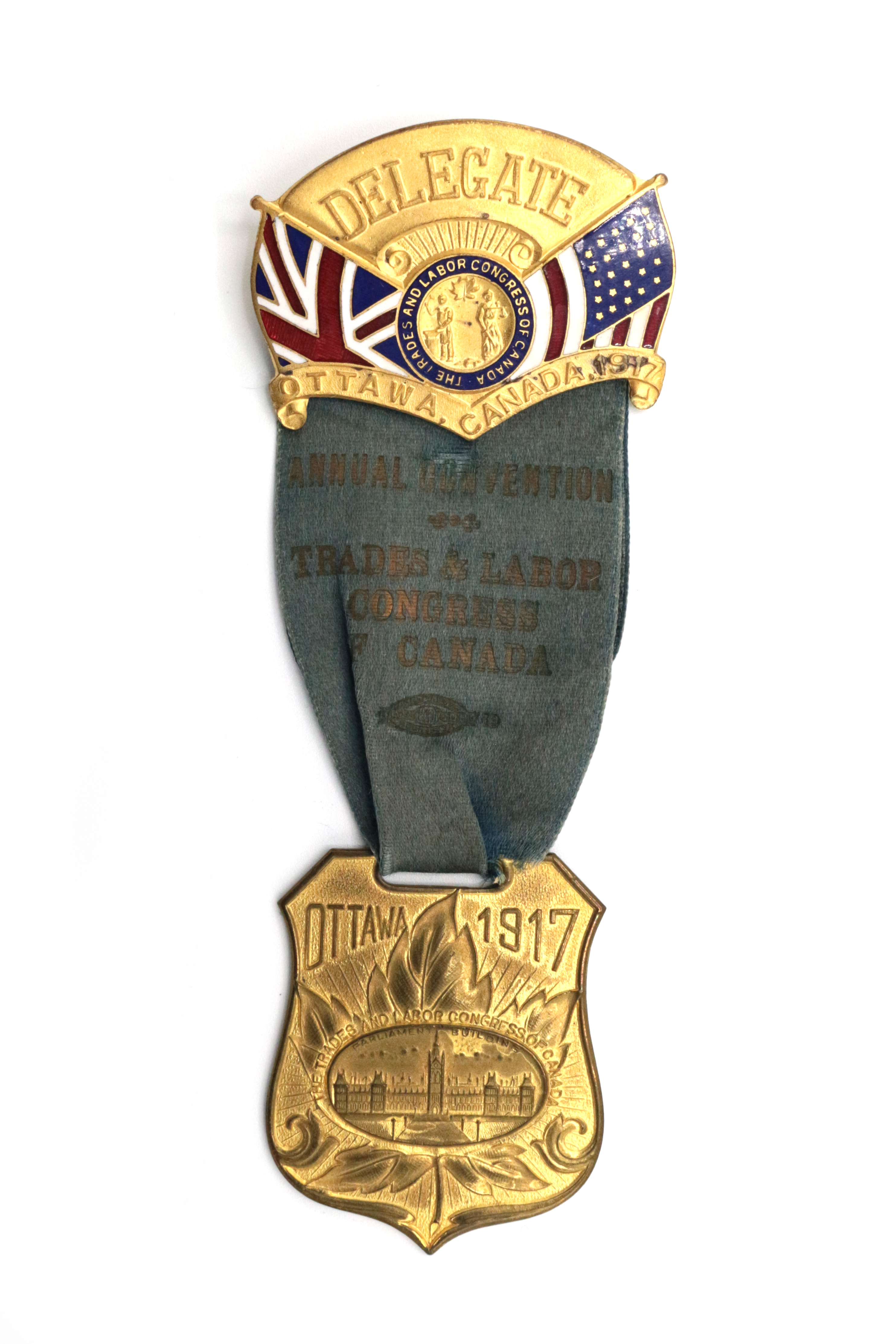 The Condé Memorial Collection contains labour heritage objects and artworks donated in 2024 by Karl Beveridge in memory of his partner in life and art, Carole Condé. Beveridge and Condé are renowned labour artists and two of the founding members of WAHC. The objects in this donation consist of historical objects relating to labour movements and unions in Canada, USA, Australia, England, and Norway. Priority was given by Beveridge to collect objects related to Canadian unions, but he also collected objects relating to American unions if they had Canadian contingents. International labour objects were often gifts from Condé and Beveridge’s unionist colleagues from around the world. Many of these objects are evidence of individuals’ active union membership, such as delegate ribbons from union conventions, dues booklets/receipts, and union pin-back buttons and pins. Others are evidence of labour print history, such as letterpress cuts and union constitution booklets. There are union branded clothing objects such as a necktie, hats, and a briefcase, as well as labels and tags calling for union labels. Other objects include shirt buttons, sculptures, signs, educational materials, stickers, a tobacco pouch, postcards, matchbooks, lighters, and handbooks. Together, the objects in this collection trace material histories of global union membership, campaigns, and labour movements from the 1880s-present.